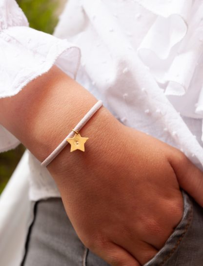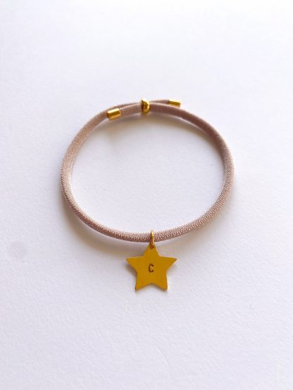 This initial star elastic bracelet consist on a star charm that you can engrave with an initial to be even more special.  The perfect gift for a girl on her birthday or communion day. The elastic cord makes it very comfortable to wear and also more secure anti-tug.