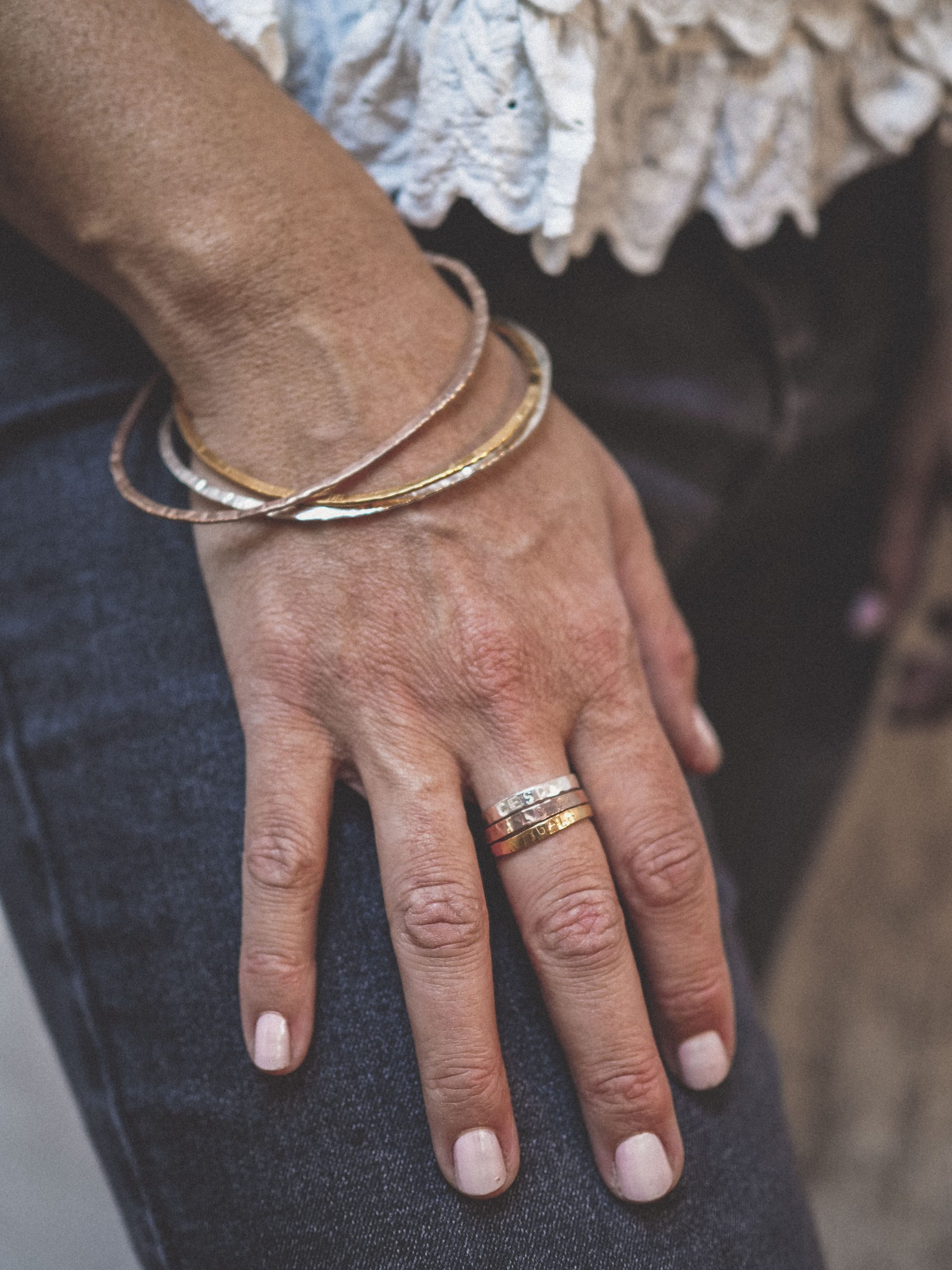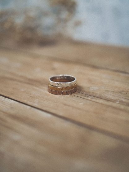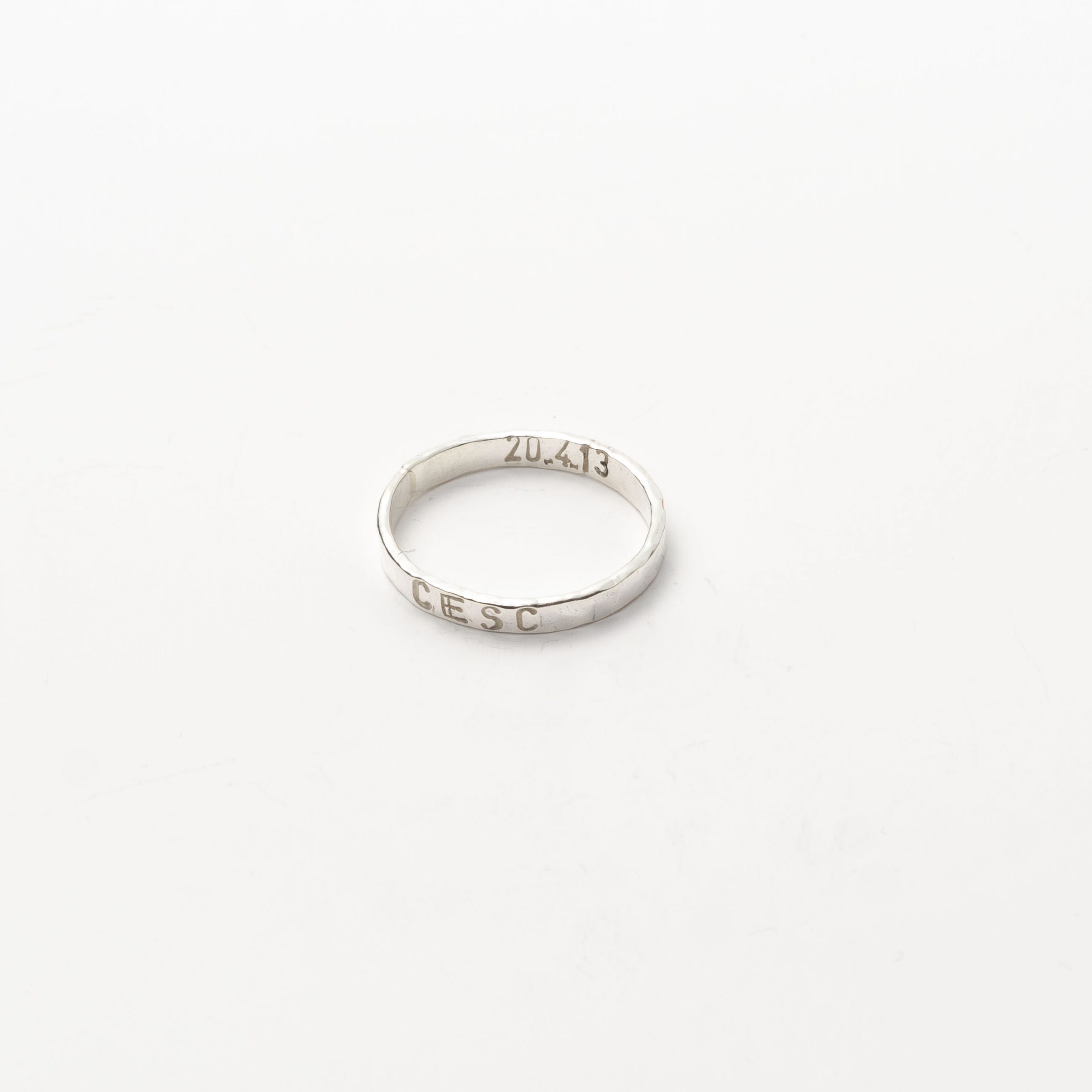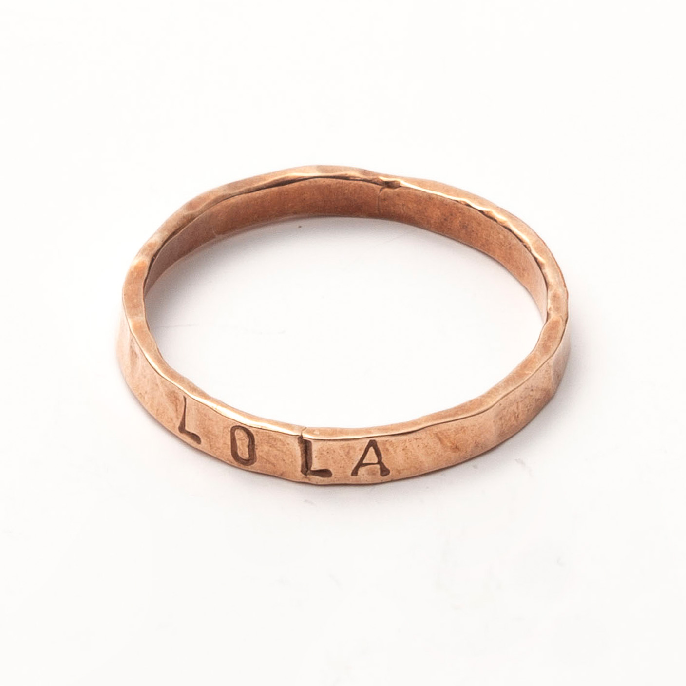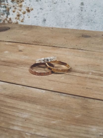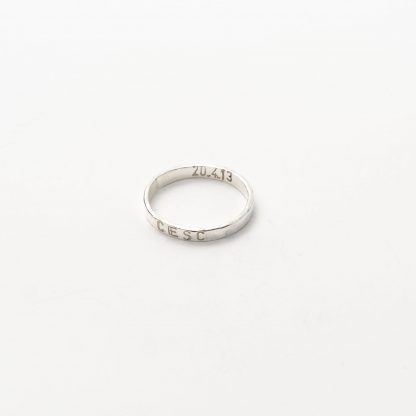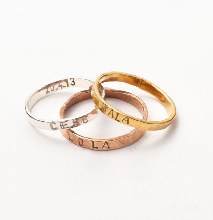 Nuestras joyas son personalizables para que sean únicas para quien las lleva. El grabado es en Mayúsculas y es un grabado con punzones que hace un efecto com de escritura en mecanografía. Los grabados se hacen a mano en nuestro taller de manera personalizada.