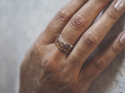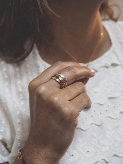 Todas nuestras joyas están confeccionadas con plata de 1ra ley con baños de oro de 18kt. También trabajamos con Oro 18kt, Oro blanco y Oro Rosa en piezas por encargo o en la colección “Wedding” de alianzas y anillos de pedida. Aunque todas nuestras joyas se pueden hacer en Oro 18kt. Nuestras piezas están hechas a medida con un diseño único y personalizable con el nombre, la inicial o mensaje que prefieras.