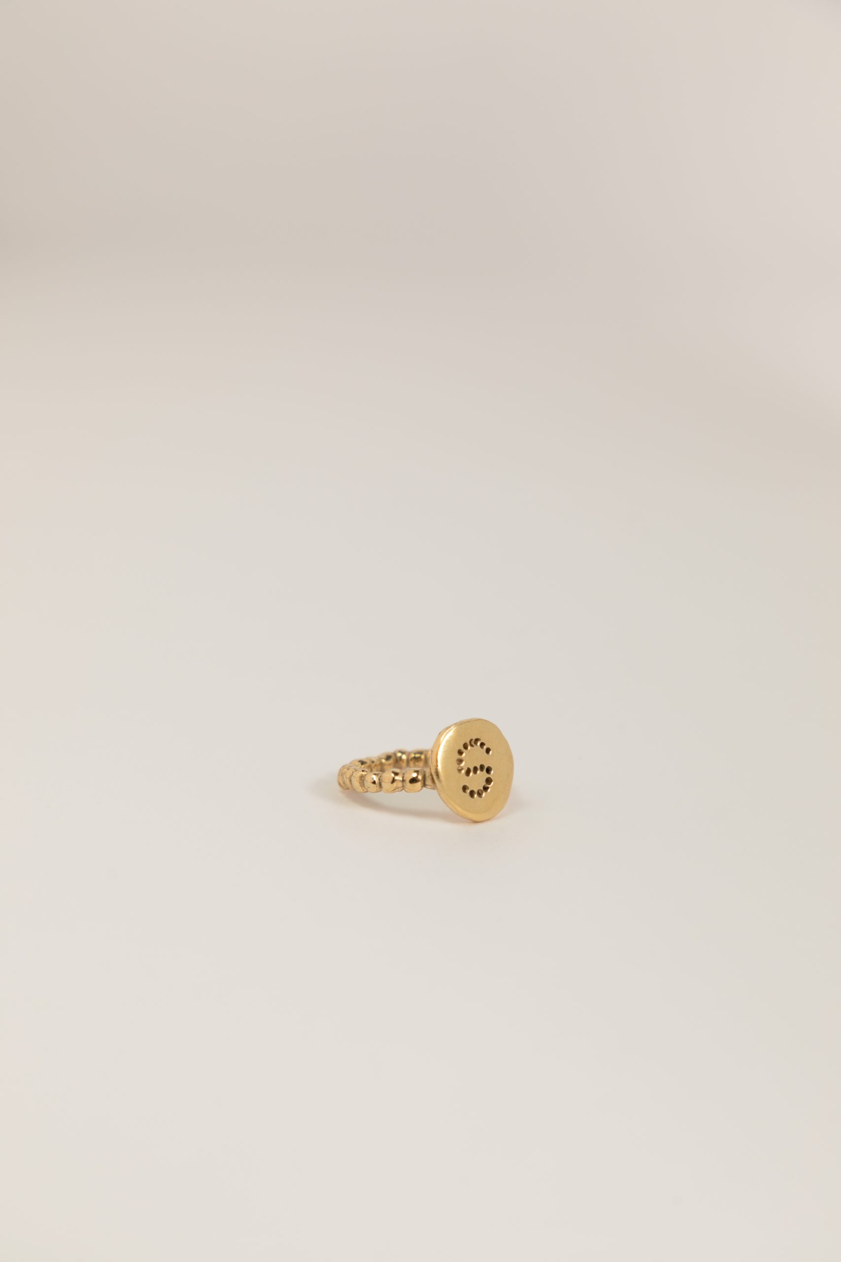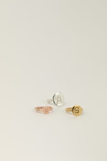 El Anillo inicial orgánico mediano es un anillo con un diseño muy diferente y original. Además ninguno es igual que otro ya que cada uno está hecho de manera artesanal. La medalla es ovalada pero irregular y le da un aspecto muy orgánico y único. Y el arito del anillo está compuesto por una linea de bolitas también con forma de redonda imperfecta e irregular. Un anillo que eleva tu look y te da un punto muy sofisticado, sin perder la elegancia. Puedes personalizarlo con la inicial que tú desees. Un anillo muy elegante y muy cómodo de llevar para el día a día. Es perfecto para combinar con otros anillos y conseguir un look muy actual.