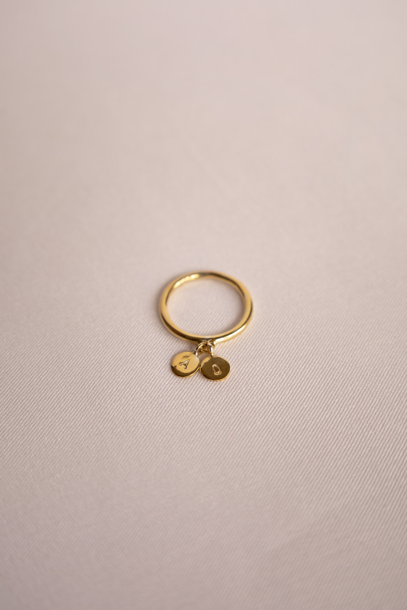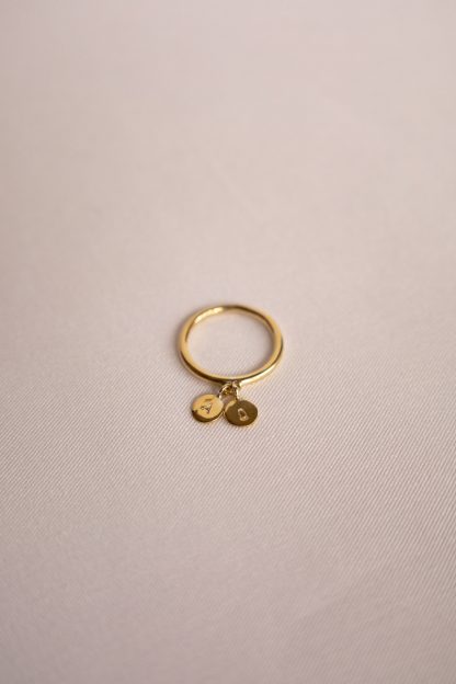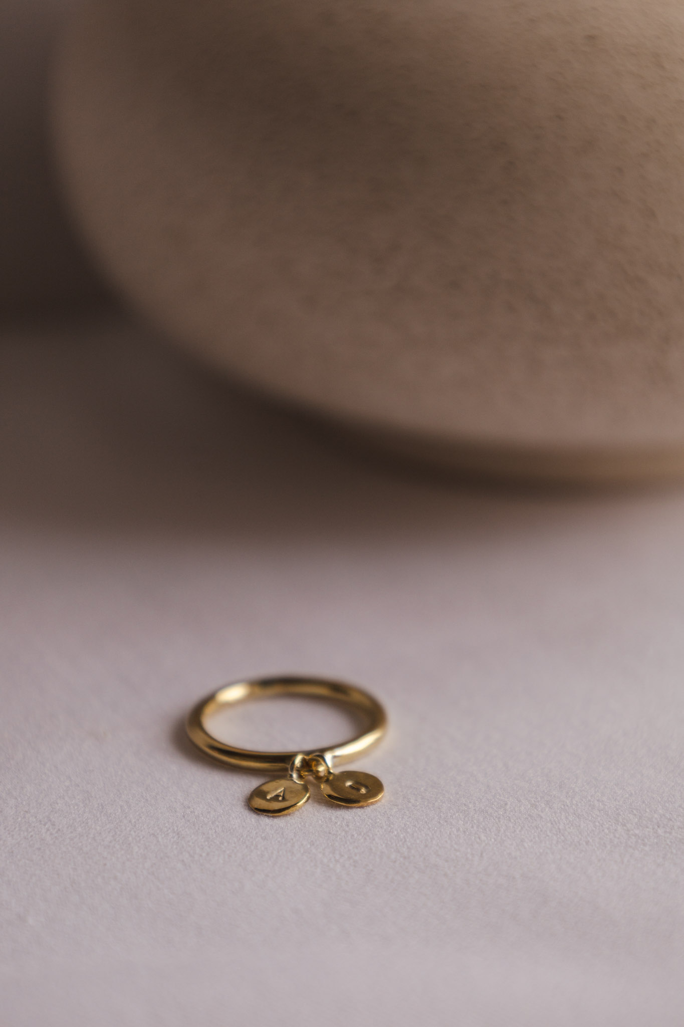 Este anillo personalizado lleva una medallita colgando con una inicial grabada. Puedes añadirle hasta 3 medallitas. Tiene un diseño minimal y a la vez muy original. Queda muy bonito puesto porque las medallas se van moviendo y le da un punto muy vivo. Puedes personalizarlo con la inicial que tú desees. Un anillo muy elegante y muy cómodo de llevar. Es perfecto para combinar con otros anillos finos y conseguir un look muy actual.