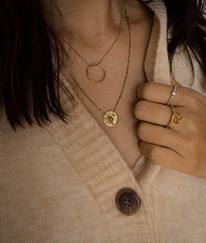 Todas nuestras joyas están confeccionadas con plata de 1ra ley con baños de oro de 18kt. También trabajamos con Oro 18kt, Oro blanco y Oro Rosa en piezas por encargo o en la colección “Wedding” de alianzas y anillos de pedida. Aunque todas nuestras joyas se pueden hacer en Oro 18kt. Nuestras piezas están hechas a medida con un diseño único y personalizable con el nombre, la inicial o mensaje que prefieras.
