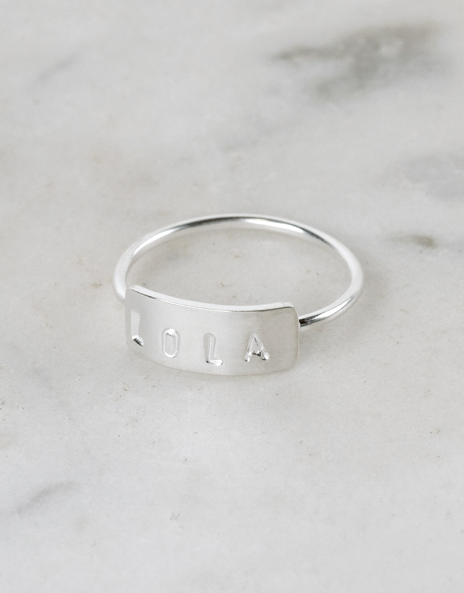Anillo personalizado con plaquita con nombre, un diseño muy especial y diferente. Puedes personalizarlo con el nombre que tu desees. Un anillo muy elegante y muy cómoda de llevar. Puedes grabar un nombre o varias iniciales si lo prefieres.