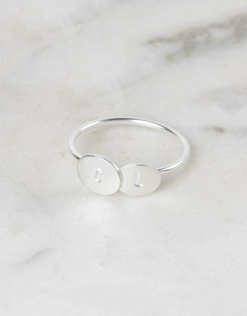 Este anillo personalizado con Doble pieza ovalada con 2 iniciales grabadas, es un regalo inolvidable y muy especial que emociona y permanece en el tiempo al ser tan personal. Puedes hacer este anillo a tu gusto para que te sientas totalmente identificada con él y se convierta en esa joya tan especial que no te quitas nunca y te acompaña en tu día a día.