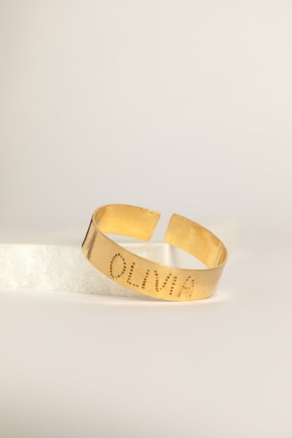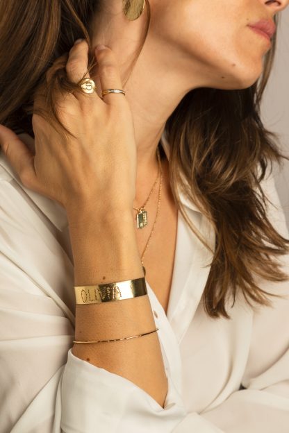 El brazalete Nombre punteado, es un brazalete con un diseño muy diferente y original. Está hecho con una técnica artesanal y totalmente a mano. Eso hace que ninguno sea igual que otro y eso lo hace aún más especial y único. Un brazalete que eleva tu look y te da un punto muy sofisticado, sin perder la elegancia. Puedes personalizarlo con el nombre o las iniciales que tú desees.