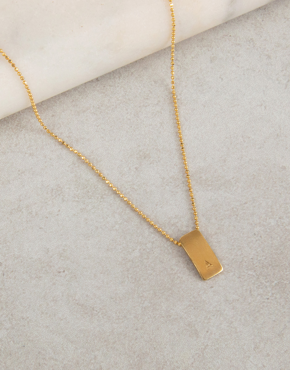 El collar con placa vertical personalizada es un collar con un diseño minimal y muy elegante que puedes personalizar con una o dos iniciales. Puedes engastar una circonitas, que hará de esta joya una pieza aun más especial.  Una joya que te acompaña siempre y te recuerda en todo momento el amor que sientes por los tuyos.