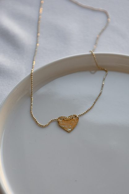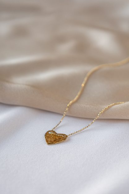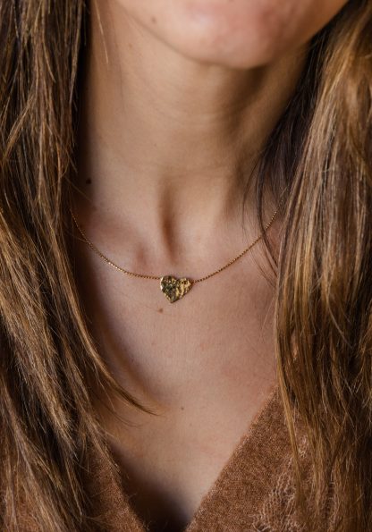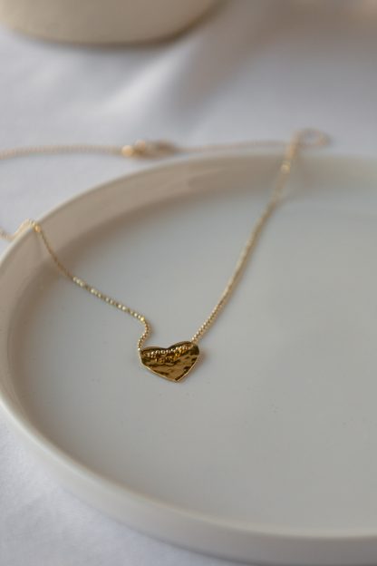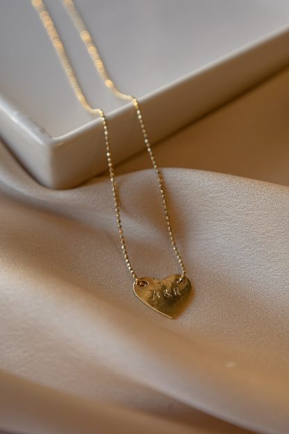 El Collar Corazón Martelé con grabado, es joya que simboliza el amor y afecto que sientes por esa persona. Es un corazón muy especial no solo por su diseño con efecto Martelé que le da ese aspecto irregular y artesanal que lo hace único y diferente del resto de Charms corazón convencionales. Sino también porque puedes personalizarlo con un grabado en el reverso. Puedes grabar de 1 a 3 iniciales. Está hecho a mano en nuestro taller, con plata de 1ra ley y baño de Oro de 18kt de 3 micras. Un colgante muy elegante y fino para llevar siempre puesto, y combinarlo con otros collares.