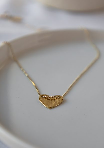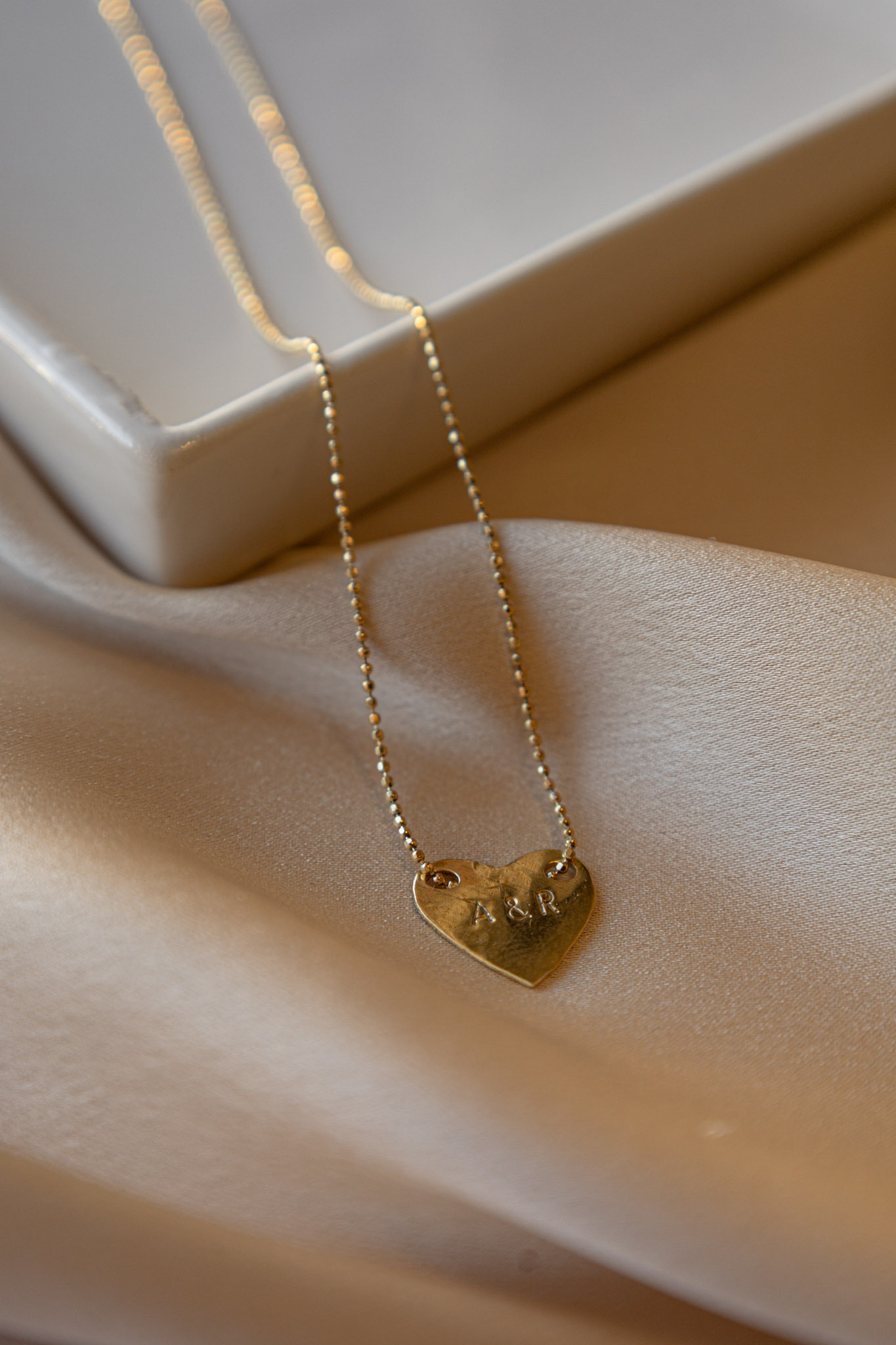 Este Collar Corazón Martelé con grabado es un regalo inolvidable y muy especial que permanece en el tiempo al ser tan personal. Puedes hacer este collar a tu gusto para que te sientas totalmente identificada con él y se convierta en esa joya tan especial que no te quitas nunca y te acompaña en tu día a día.