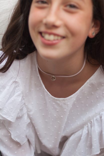 Un diseño clásico que no falla. ¡A las más pequeñas les encanta! Con cinta elástica “anti tirones” y con una medalla redonda con inicial grabada y fecha grabada detrás. Puedes añadir una piedra swaroski de color neutro, junto con la medalla. Una pieza perfecta para nuestras pequeñas, ya que al tener la cinta elástica es muy cómoda de llevar y evita tirones secos. Y al ser de plata, la pueden llevar cada día sin tener que quitársela para nada. Es resistente al agua. Es el regalo perfecto para su cumpleaños o algún evento especial como su comunión. Un diseño único que no encontrarás igual, realizado con técnicas artesanales en nuestro taller.