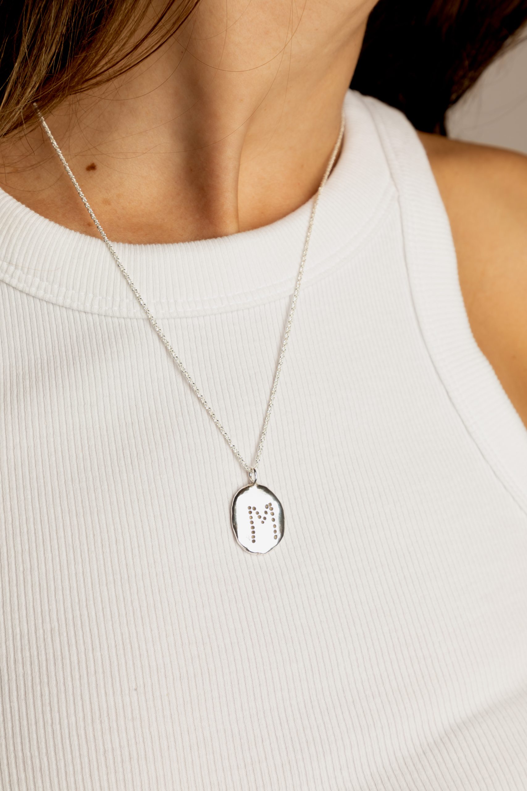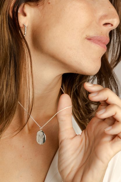 Nuestras joyas son personalizables para que sean únicas para quien las lleva. El grabado es en Mayúsculas y es un grabado con punzones que hace un efecto com de escritura en mecanografía. Los grabados se hacen a mano en nuestro taller de manera personalizada.