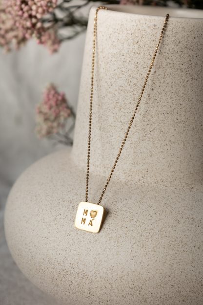 El collar Mamá cuadrado personalizado, es un collar con un diseño minimal y muy elegante que puedes personalizar con el escrito Mamá (con un corazón integrado para decirlo todo en una sola palabra) o con un nombre corto o varias iniciales (hasta 6 caracteres). Una bonita manera de mostrarle tu cariño y darle las gracias por todo lo que hace por ti. Una joya que le acompañará siempre y le recordará en todo momento el amor que siente por los suyos. Un bonito regalo para esa amiga que acaba de ser madre o una manera muy especial de darle las gracias en el Día de la Madre.