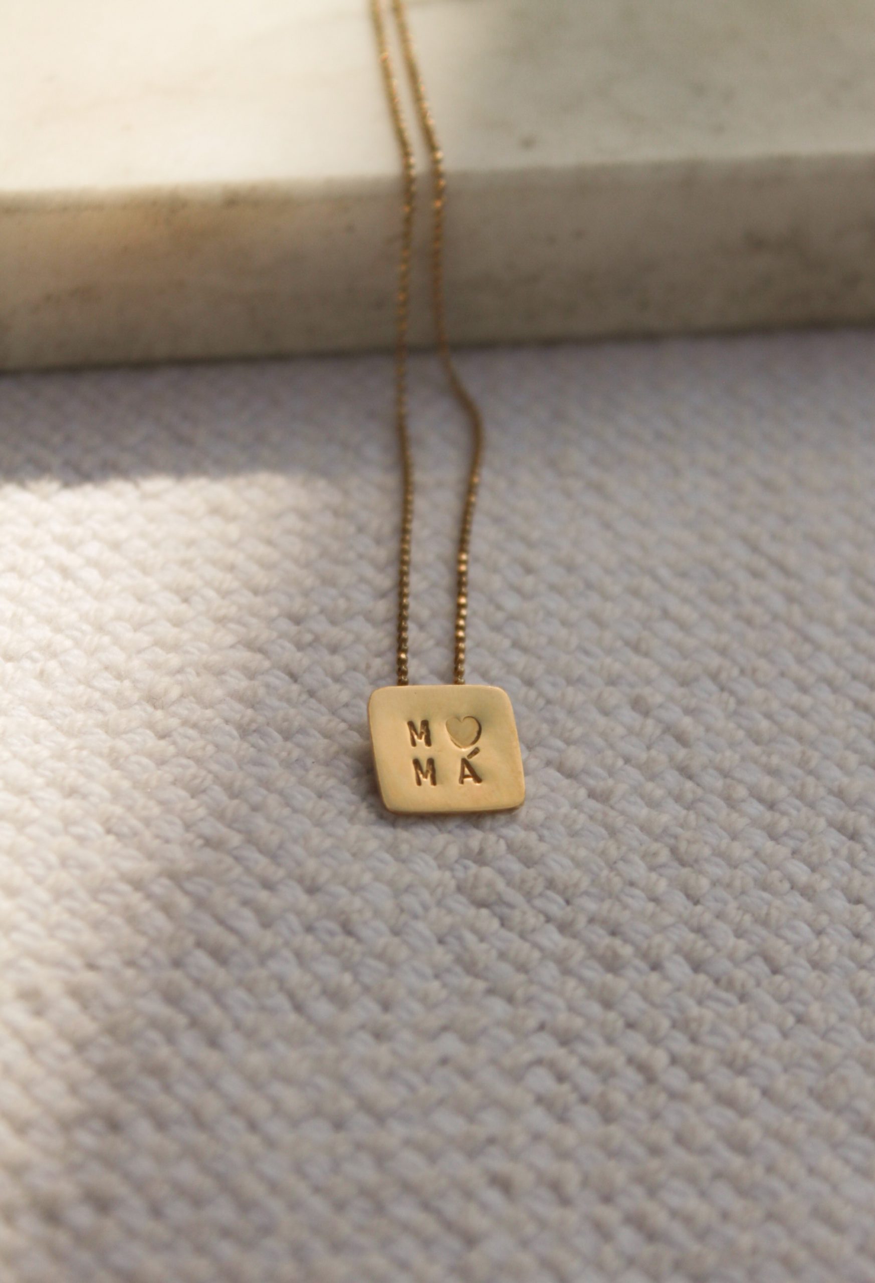 El collar Mamá cuadrado personalizado con mensaje, es un collar con un diseño minimal y muy elegante que puedes personalizar con el escrito Mamá (con un corazón integrado para decirlo todo en una sola palabra). Por ello es una bonita manera de mostrarle tu cariño y darle las gracias por todo lo que hace por ti. Una joya que le acompañará siempre y le recordará en todo momento el amor que siente por los suyos. Es un bonito regalo para esa amiga que acaba de ser madre o una manera muy especial de darle las gracias en el Día de la Madre.
