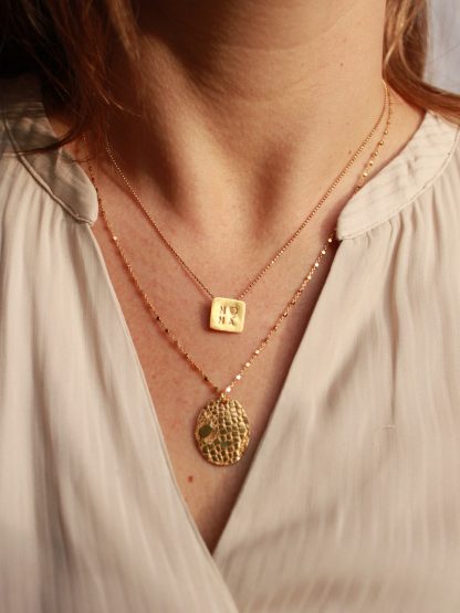 Todas nuestras joyas están confeccionadas con plata de 1ra ley con baños de oro de 18kt. También trabajamos con Oro 18kt, Oro blanco y Oro Rosa en piezas por encargo o en la colección “Wedding” de alianzas y anillos de pedida. Aunque todas nuestras joyas se pueden hacer en Oro 18kt. Nuestras piezas están hechas a medida con un diseño único y personalizable con el nombre, la inicial o mensaje que prefieras.
