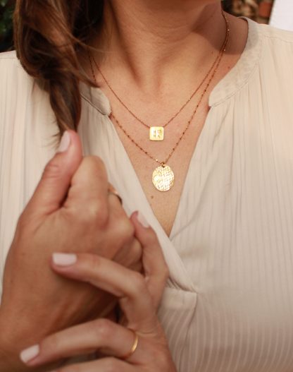 El collar Ovalado con Textura personalizado, es un collar muy elegante y único que puedes personalizar con los nombres, mensaje y fecha que tú desees en el reverso. Una joya que puedes llevar sola o combinada con otros collares de diferentes medidas y ¡conseguir un look actual!