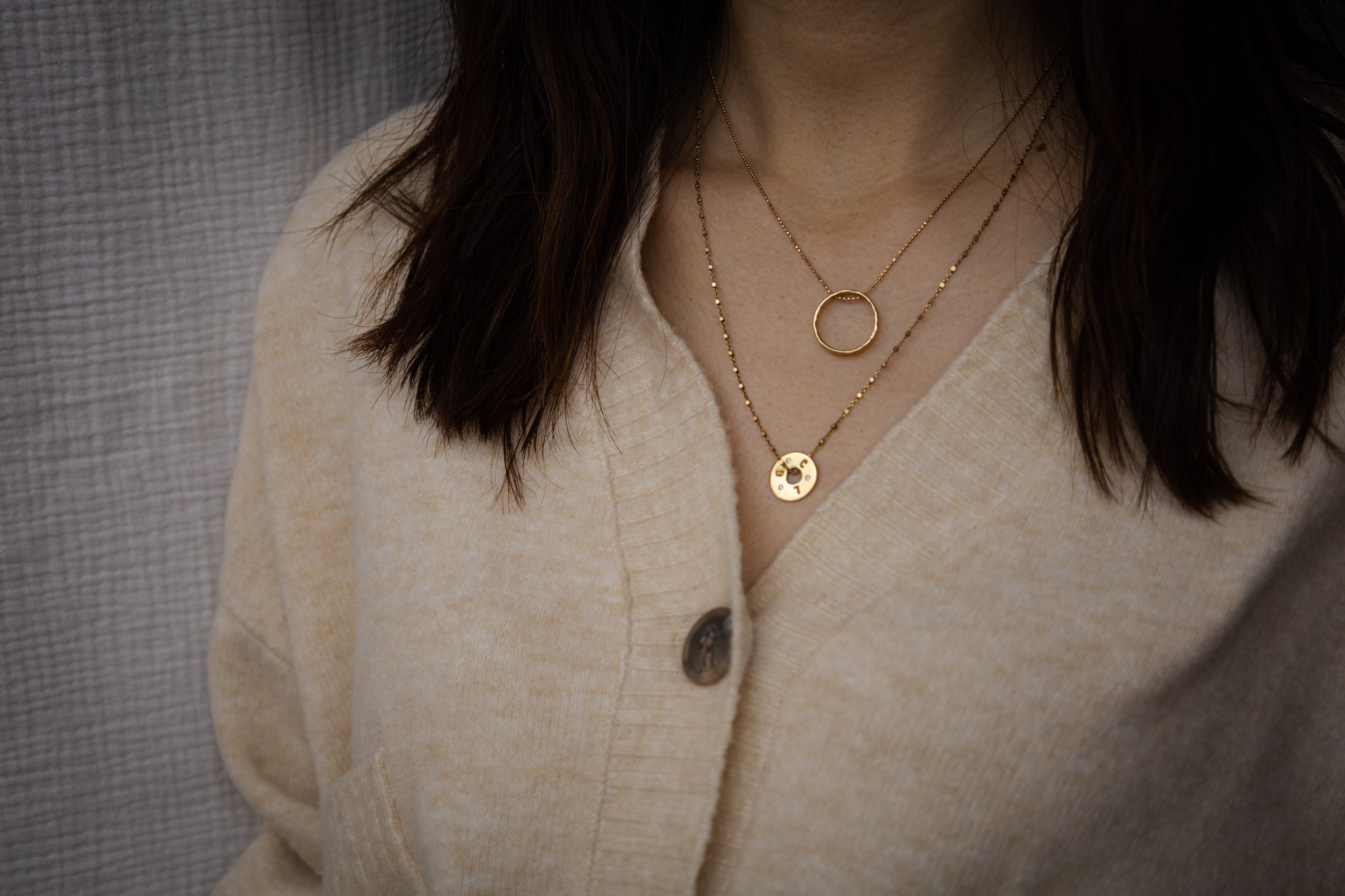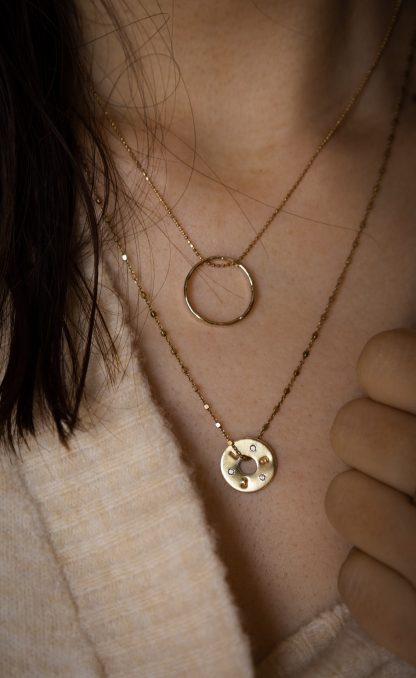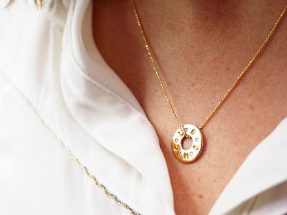 Collar personalizado Aro con iniciales. Es un diseño elegante y con mucho sentimiento. Puedes grabar 3, 4 o hasta 5 iniciales. Un collar muy elegante y muy cómodo de llevar. Puedes elegir la opción con circonitas engastadas entre cada letra para hacer de esta joya aun más especial.