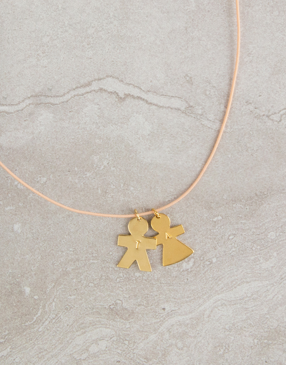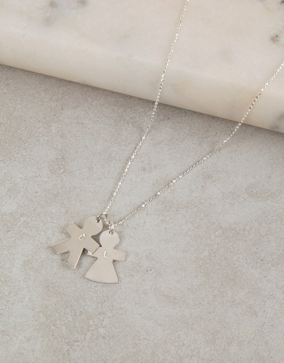 Collar con colgante en forma de niño o niña personalizables con inicial. Puedes combinar los colgantes como quieras y elegir su acabado. ¡Una joya elegante y que a la vez representa tanto sentimiento!
