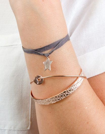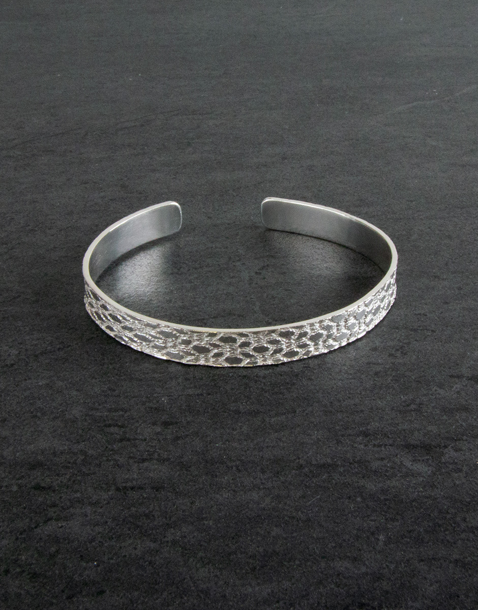 Esclava con una textura realizada de manera artesanal con puntillas. Elegante y perfecta para llevar sola o para combinar con otras pulseras para un look más  informal. Personalízala con un mensaje grabado en el interior, para que sólo tú sepas lo que representa para ti.