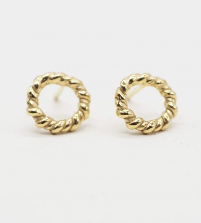 Pendientes con forma de anillas con doble hilo cruzado, realizada con una técnica artesanal. Unos pendientes diferentes y a la vez básicos que combinan con todo, ideales para llevar a diario.