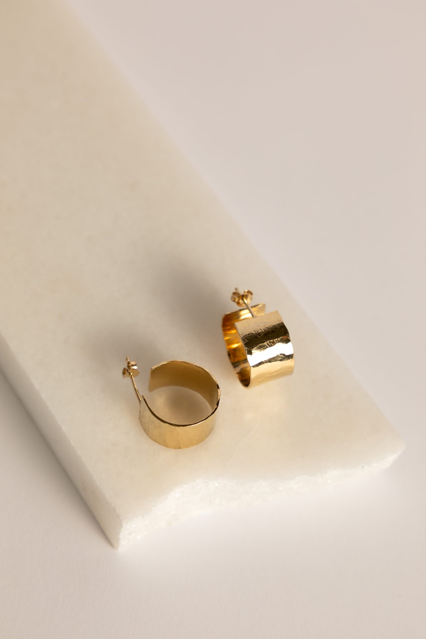Los pendientes Tubo Martelé, son unos pendientes que estilizan mucho el rostro por su forma tipo criollas y por el reflejo que hace su textura Martelé.