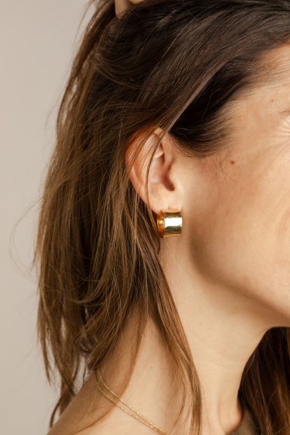 Los pendientes Tubo Martelé, son unos pendientes que estilizan mucho el rostro por su forma tipo criollas y por el reflejo que hace su textura Martelé. Su diseño hace que el pendiente al moverse refleje la luz por el efecto martelé, y eso favorece muchísimo. Es un básico perfecto que no te quitarás nunca porque son muy cómodos y combinan con todo.