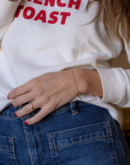 La Pulsera Corazón aro con cadena, es el regalo perfecto para esa persona tan importante en tu vida.  Una pulsera con un charm que lo dice todo por sí solo. Un corazón único por su forma tipo aro, y por su efecto Martelé que le da ese aspecto irregular y artesanal que lo hace diferente del resto de corazones convencionales. Está hecho a mano en nuestro taller, con plata de 1ra ley y baño de Oro de 18kt de 3 micras.