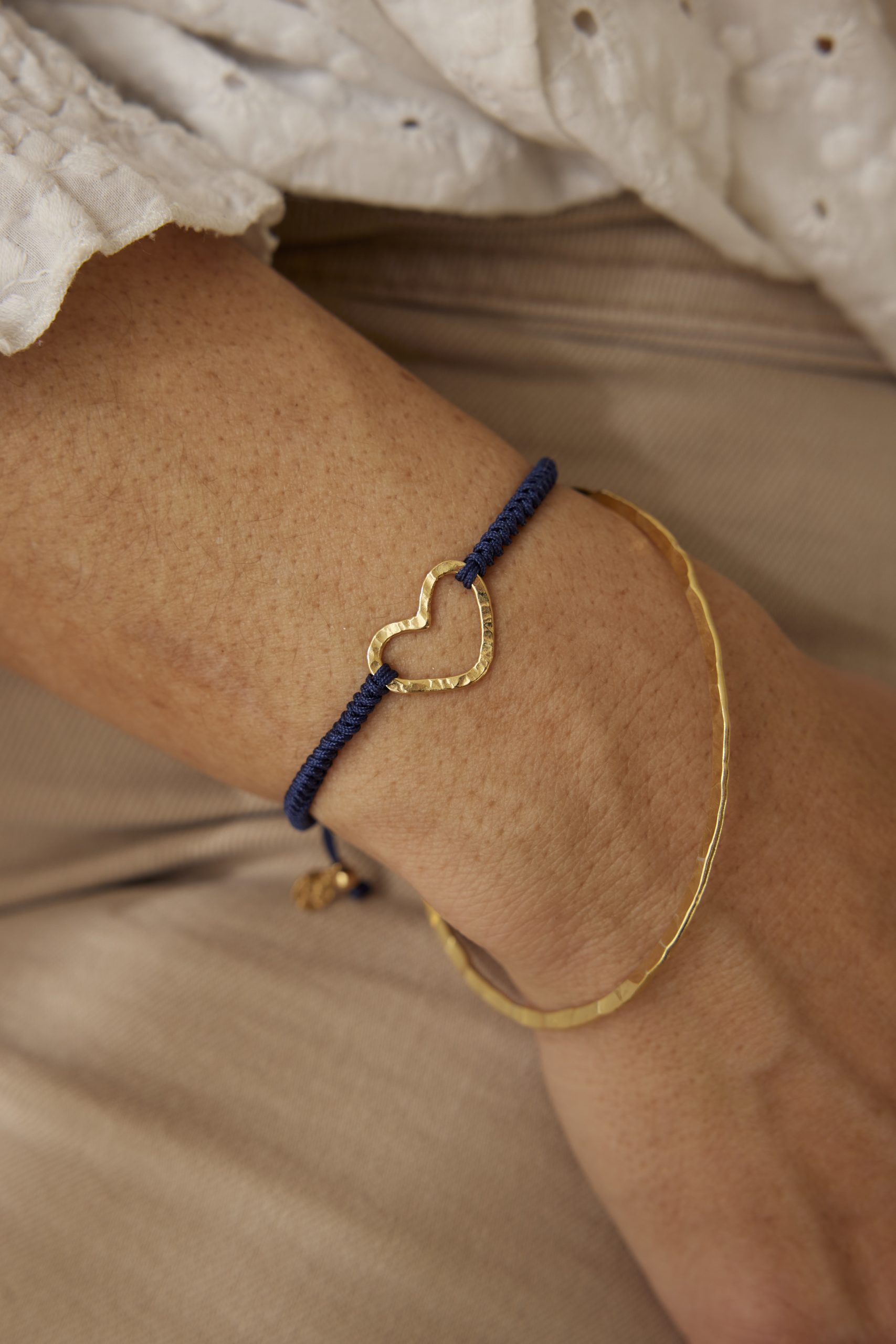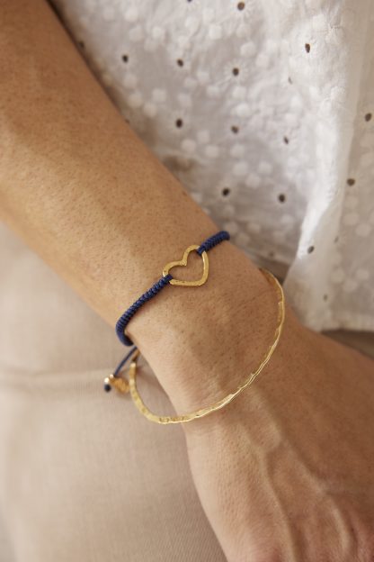 La Pulsera Corazón aro St. Valentín macramé, es el regalo perfecto para esa persona tan importante en tu vida. Una pulsera con un charm que lo dice todo por sí solo.Un corazón único por su forma tipo aro, y por su efecto Martelé que le da ese aspecto irregular y artesanal que lo hace diferente del resto de corazones convencionales. Está hecho a mano en nuestro taller, con plata de 1ra ley y baño de Oro de 18kt de 3 micras. Además la cinta macramé es ajustable y muy cómoda de llevar, de poner y quitar. Y al ser de plata de 1ra ley, la puedes llevar cada día sin tener que quitártela para nada.