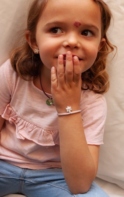 Esta pulsera elástica con colgante Flor personalizada para niña, es un regalo inolvidable y muy especial que emociona y permanece en el tiempo al ser tan personal. Es el regalo perfecto para su cumpleaños o algún evento especial como su comunión. Puedes hacer esta pulsera a tu gusto para que te sientas totalmente identificada con ella y se convierta en esa joya tan especial que no te quitas nunca y te acompaña en tu día a día.
