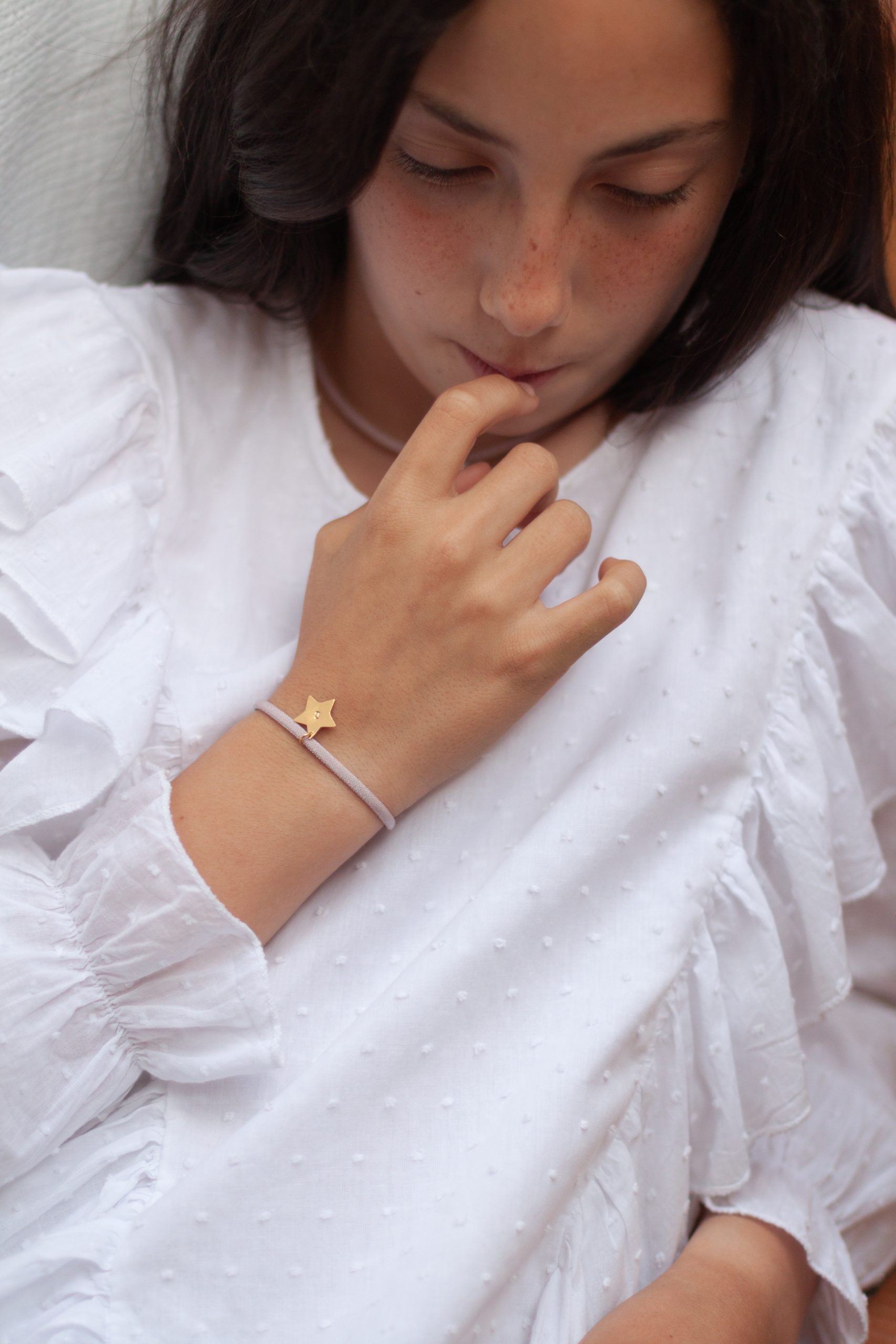 La pulsera elástica Estrella plana con inicial, es una pulsera muy especial al ser personalizable. Una pieza perfecta para nuestras pequeñas, ya que al tener la cinta elástica es muy cómoda de llevar y evita tirones secos. Y al ser de plata, la pueden llevar cada día sin tener que quitársela para nada. Es resistente al agua.