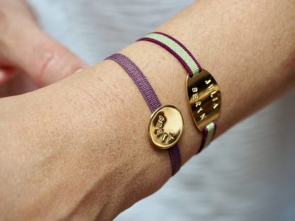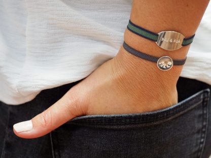 Pulsera personalizable Elástica medalla Grande y Mediana con un nombre largo, dos nombres cortos o una o varias iniciales. Un diseño único, que a la vez es super cómodo de llevar y fácil de poner al llevar una cinta elástica ajustable a tu muñeca. Tienes dos tamaños para elegir: medalla grande o mediana. Una joya que te acompaña siempre y te recuerda en todo momento el amor que sientes por los tuyos. Puedes añadir varias medallas y grabar el nombre de cada uno de tus hijos en él.