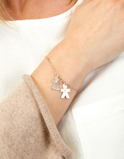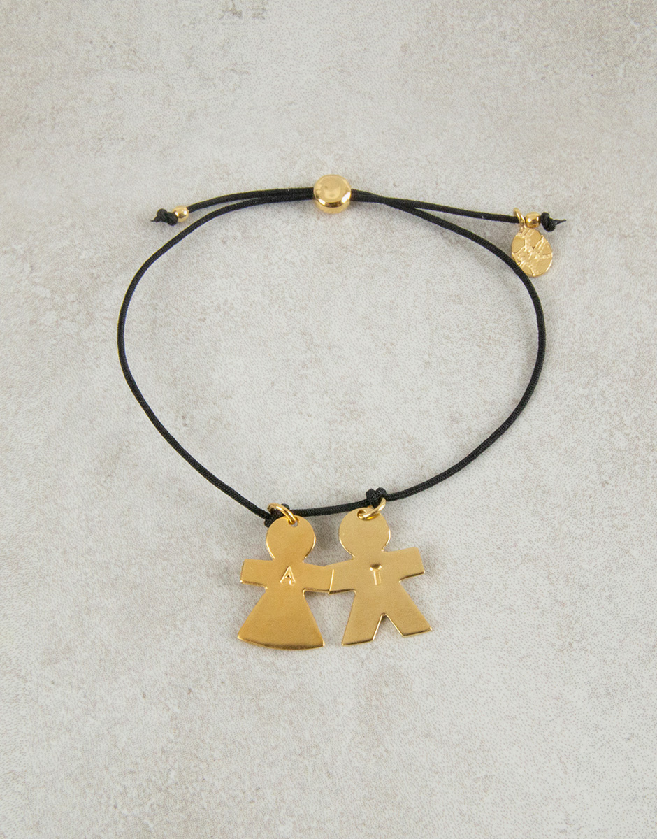 Pulsera con colgante en forma de niño o niña personalizables con inicial. Puedes combinar los colgantes como quieras, elegir su acabado, y el tipo de hilo o cadena, para que te sientas cómoda con su diseño porque ¡no te la quitaras nunca!