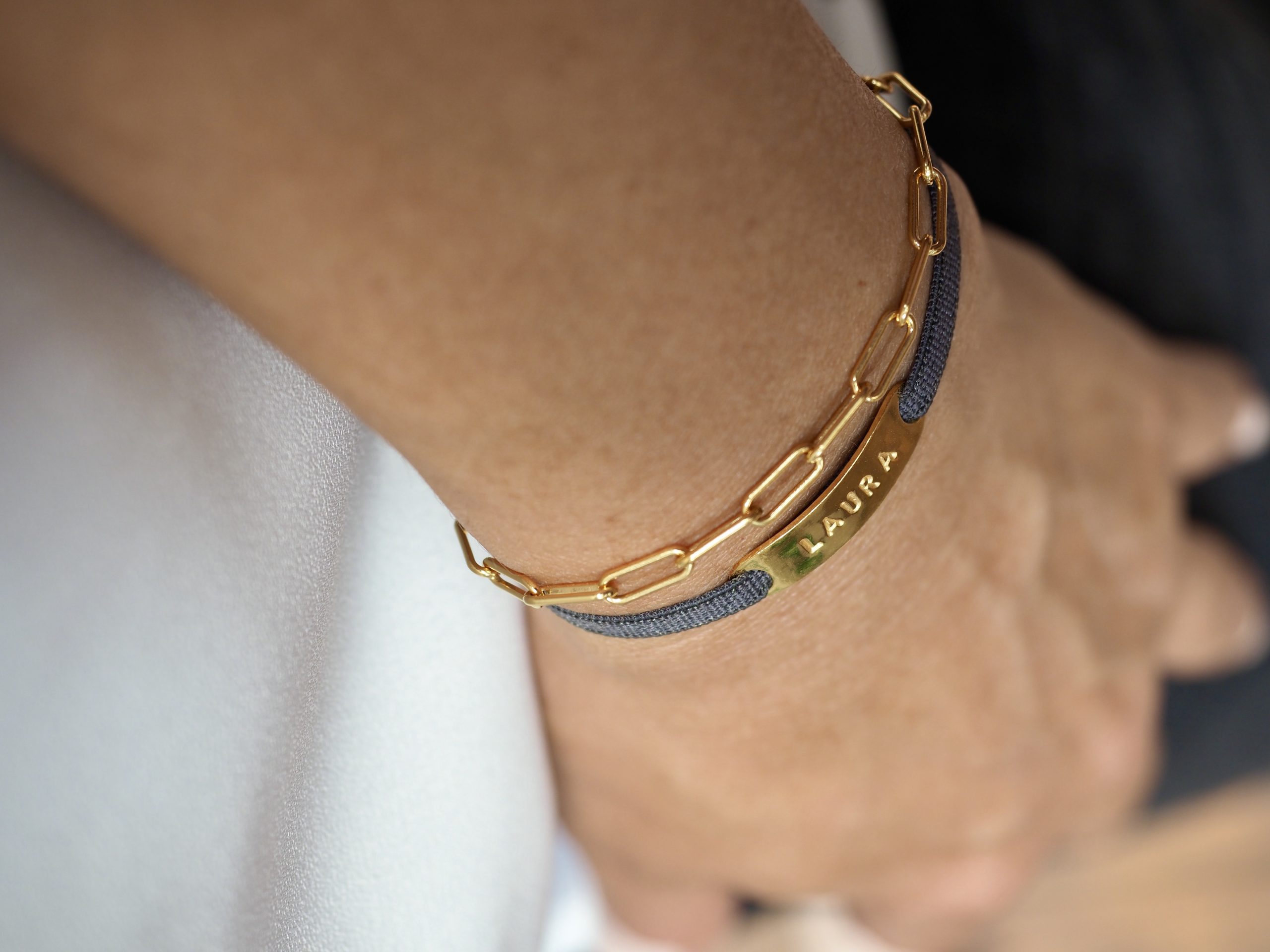 Nuestras joyas son personalizables para que sean únicas para quien las lleva. El grabado es en Mayúsculas y es un grabado con punzones que hace un efecto com de escritura en mecanografía. Los grabados se hacen a mano en nuestro taller de manera personalizada.