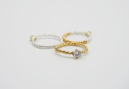 Este solitario con hilo cruzado en Oro 18kt y diamante natural, tiene un diseño clásico pero diferente. Un clásico renovado que lo hace muy especial. Una joya elegante que no entiende de modas ni del paso del tiempo. Se puede hacer en Oro 18kt Amarillo, oro Blanco o oro Rosa. El diamante es natural de alta calidad (VS / GH). Puedes elegir el tamaño del diamante entre estas tres medidas: 4,5mm diámetro (0,36ct), 3,25mm (0,14ct) o 3mm (0,11ct).