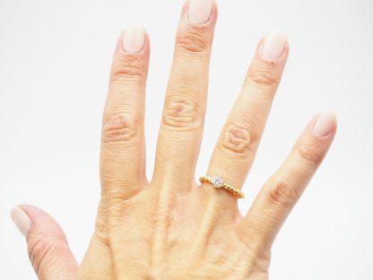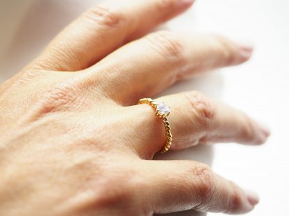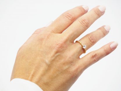 Este solitario con hilo cruzado en Oro 18kt y con diamante central, es un diseño único que hacemos en nuestro taller a través de una técnica artesanal. Es un anillo que permanece en el tiempo al ser un diseño atemporal y muy elegante. Un regalo que de bien seguro sorprenderá a la persona que lo reciba. Es un anillo muy fino que nunca te quitarás ya que es tan especial que seguro te acompaña siempre en tu día a día.